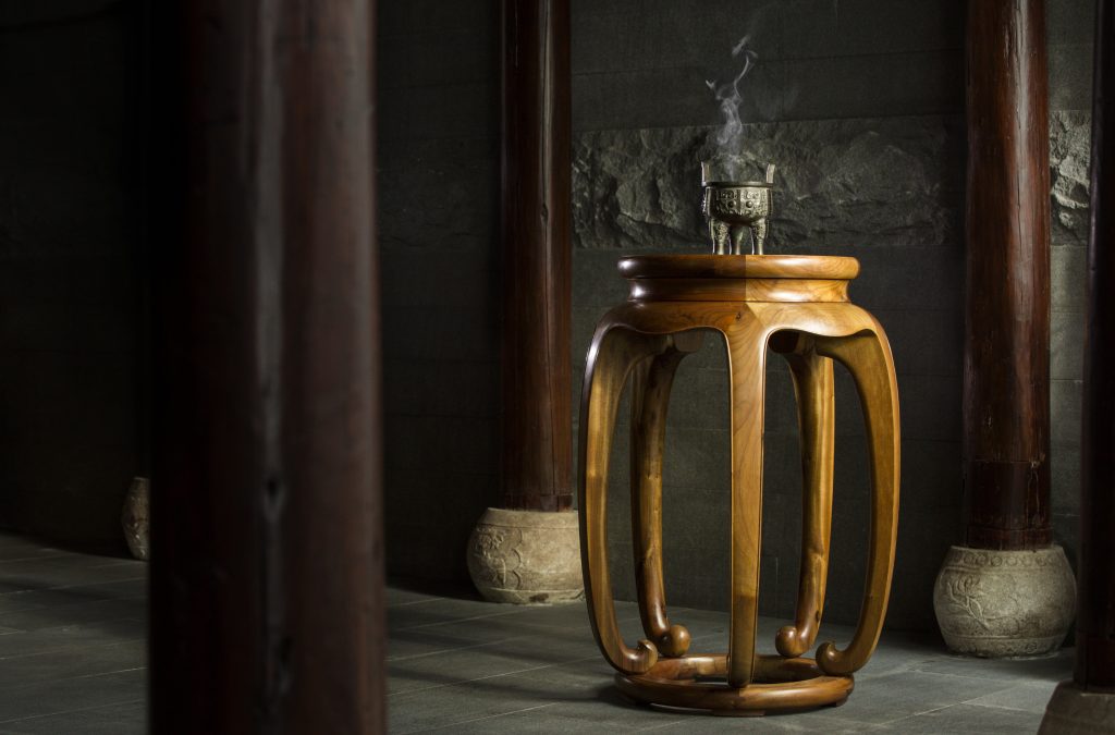 圆润浑厚,贯通一气。各个角度均自然流转,十分完美。香几腿做五数,五为天地数,以喻十方圆满。