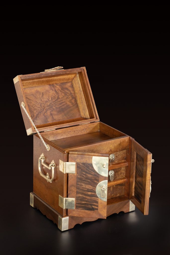 集便携、实用、安全、装饰于一体,以名贵木材与精美铜活,再现明清小型庋具典范。